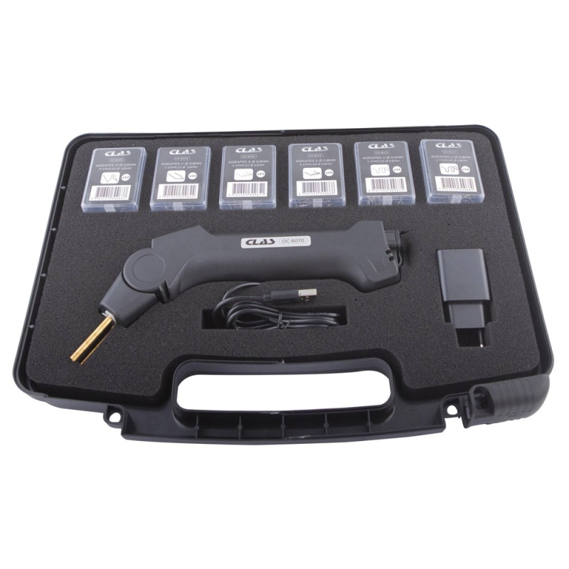 Idéale pour la réparation plastique en toute autonomie. Facile d'utilisation grâce à sa tête articulée 4 positions idéale pour travailler dans les angles ou dans les espaces confinés. Equipée d'une protection thermique (cycle de travail de 30 secondes). Equipée également d'une Led en tête pour éclairer le point de travail Livrée avec 300 agrafes en acier inoxydable. Plus produit Rapidité d'intervention Caractéristiques Caractéristiques : - longueur (hors électrode) : 220mm - longueur totale : 255 mm - largeur : 35mm - température de chauffe : 600°C - courant d'entrée : DC 5V 2A - courant de sortie : 3.7 8A Max - batterie : 3.7V 4000mAh Li-ion - temps de charge : 3H - capacité 400 agrafes avec batterie en une charge (agrafeuse chaude)