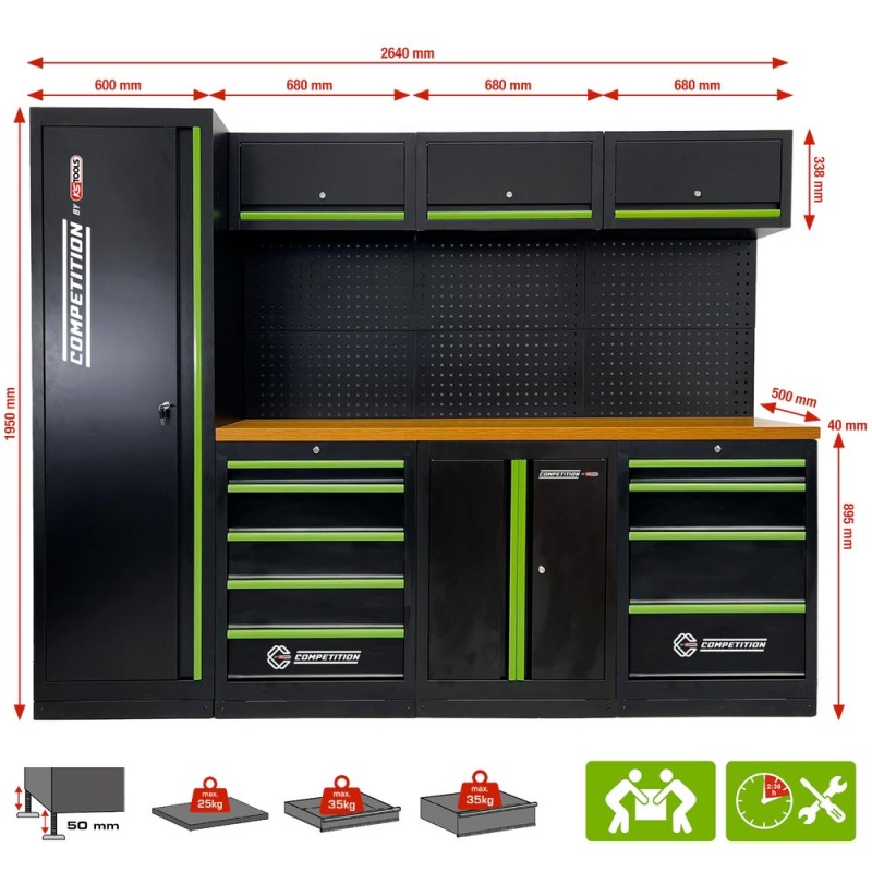 Mobilier d'atelier 2640mm 7 éléments 512.5500
