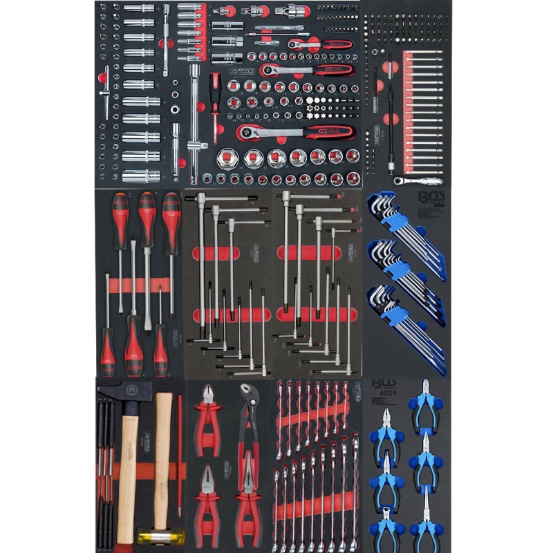 Module de douilles et accessoires mat, cliquet ultimate - module 1/1 - pour servantes et etablis - empreinte des outils découpee au laser - mousse imputrescible bi colores composition : 3 cliquets : 1/4" - 3/8" - 1/2" ultimate 1 tournevis : 1/4" rallonges 1/4": 50 - 100 mm rallonges flexible 1/4": 150 mm t 1/4": 110 mm rallonge 3/8": 150 mm rallonges 1/2": 125 - 250 mm cardans (série 911): 1/4" - 3/8" - 1/2" douilles courtes 1/4": 4 - 4.5 - 5 - 5.5 - 6 - 7 - 8 - 9 - 10 - 11 - 12 - 13 - 14 mm douilles longues 1/4": 4 - 5 - 6 - 7 - 8 - 9 - 10 mm douilles torx femelle 1/4": e4 - e5 - e6 - e7 - e8 douilles tv plats 1/4": 4 - 5.5 - 6.5 - 7 mm douilles cruciformes 1/4": ph1 - ph2 (x 2) pz1 - pz2 (x 2) douilles allen 1/4": 3 - 4 - 5 - 6 mm douilles tv torx 1/4": t8 - t9 - t10 - t15 - t20 - t25 - t27 - t30 douilles tv torx percées 1/4": t8 - t10 - t15 - t20 - t25 - t27 - t30 douilles courtes 3/8": 10 - 11 - 12 - 13 - 14 - 15 - 16 - 17 - 18 - 19 mm douilles longues 3/8": 10 - 11 - 12 - 13 - 14 - 15 mm douilles torx femelle 3/8": e10 - e11 - e12 - e14 - e16 - e18 douille bougie 3/8": 18 mm douilles courtes 1/2":8 - 10 - 11 - 12 - 13 - 14 - 15 - 16 - 17 - 18 - 19 - 20 - 21 - 22 - 24 - 27 - 30 - 32 - 34 mm douilles longues 1/2": 16 - 17 - 18 - 19 - 22 mm douilles torx femelle 1/2": e20 - e24 douilles bougie 1/2": 16 - 21 mm douilles porte embout :1/4" x 1/4" - 3/8" x 5/16" - 1/2" x 5/16" embouts : 1/4": t5 - t6 - t7 - t8 - t9 - t10 - t15 - t20 - t25 - t27 - t30 1/4": t7 perce 1/4": ts10 - ts15 - ts20 - ts25 - ts27 - ts30 - ts40 - ts45 1/4" xzn: mm - mm - m8 1/4" ribe: mm - mm - mm - mm - m9 5/16" plat: 8 - 10 - 12 mm 5/16"cruciformes : ph3 - ph4 - pz3 - pz4 5/16"allen : 7 - 8 - 10 - 12 - 14 mm 5/16"torx: t40 - t45 - t50 - t55 - t60 - t70 5/16"torx perce: t40 - t45 - t50 - t55 - t60 - t70 Module version 2022 douilles et accessoire finition Mat , cliquet ultimate